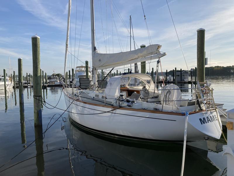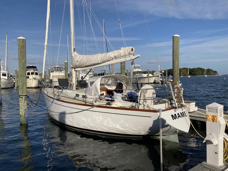 First owned by Steele Griswold - former owner of Shelburne Shipyard - Mame is a heavily modified Tartan-41. The hull and deck were ordered unfinished from Tartan Marine in 1974 and delivered to the Shelburne Shipyard where the interior and teak toe rail were installed to Mr. Griswolds specifications.