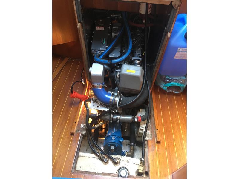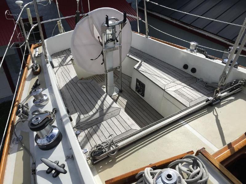 The boat was repowered, and a teak cockpit installed by the second owner complete with Harken electric winches and Raymarine electronics as well as roller furling, windlass, and anchor bow roller.