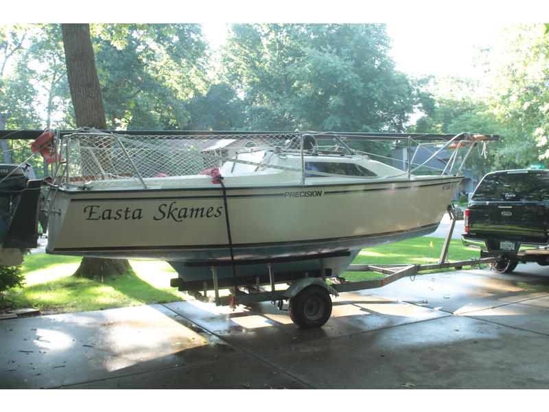 Cabin has 50" headroom with berths for 4 adults, fabric covered cushions, alcohol stove, stainless steel sink, cooler, storage compartments, porta-potty under V-berth 135% roller furling genoa with well-placed lower window. Mainsail has 112 area with boom vang and jiffy reefing system with one reef point. Jib sail, sail covers, tiller cover. Performance trailer Yamaha 6 hp long shaft outboard motor Safety: Plastimo Contest cockpit compass, life preservers (2 adult, 1 child), harness with attachment strap, fire extinguisher, 2 throwable cushions, anchor, bilge pump, air horn, fenders, dock lines Shore power with 30-amp cord, mosquito netting, cockpit tent, plus many extras! |