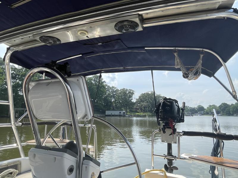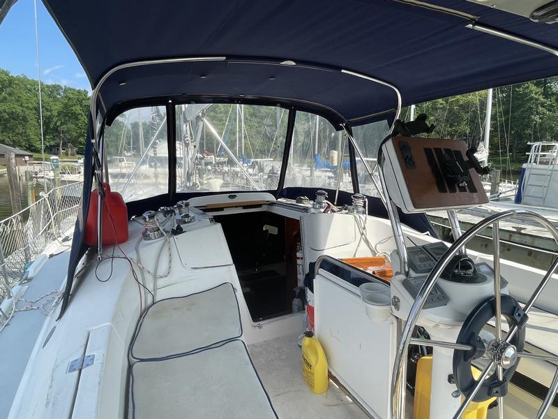In addition it has a $9500 full cockpit canvas enclosure with newer isinglass in beautiful condition davits and a 4 hp Tohatsu outboard for the dinghy but you would bring your own dinghy.plus solar ,Victron MPPT and 5 batteries.
