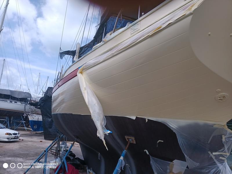 Brand new cutlass bearing, stuffing box. prop polished! Brand new interior cushions too! All brand new bottom with 3 barrier coats and 2 bottom paint coats, same as new polyurethane 2 parts marine paint for top and side hull (3 coats plus primer)...pictures before and after the paint job