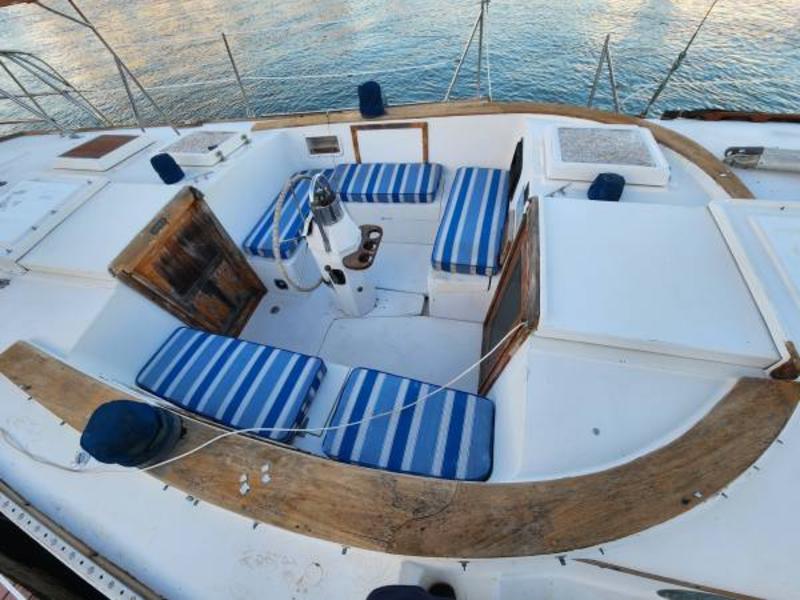 Engine runs well with low hours after rebuild. This boat is being sold as is-where is. Once you finish your refit you will have a comfortable world cruiser!