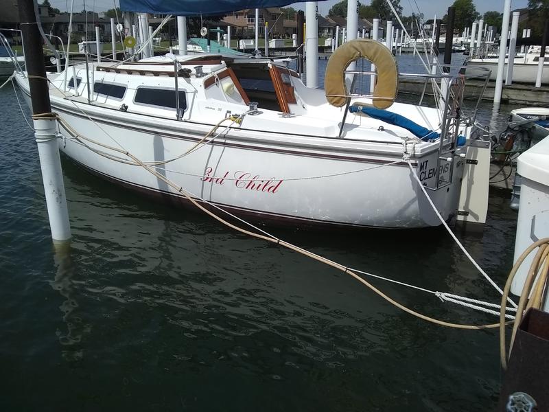 -Triple deck organizers with triple rope clutches and #7 winches on both sides of the cabin top with backing plates for all, 2 additional #7 winches on combings, 2 winch handles -Interior is traditional layout -Fresh bottom paint (VC17) each spring -Freeboard cleaned and polished each spring -Cabin has a pop-top feature -Newer loose-footed mainsail made by Kent Sail Co. -New furling headsail (150 genoa) last season -Standard (100) jib and storm jib as well as the old mainsail in the in the forward berth in sailbags -Mainsail cover (Sunbrella material) -Newer rudder with heavy duty pintles, tiller cover -Horizon Dual Display Instruments (depth, temp, speed), bulkhead mounted illuminated compass -CD/stereo with 4 speakers, 2 are portable -All navigation lights have always worked -VHF Ship to Shore with mast mount antenna, mast mounted windex -30 Amp shore power, 15 Amp fuse box, Schumacher (Smart) battery charger, GFI protected outlets -2 batteries with battery switch (one battery new last season, the other 2 seasons ago) -Alcohol stove (never used), fixed head (rarely used), sink with manual pump faucet, manual bilge pump, adjustable back stay -9.9 Evinrude Yachtwin Electric Start Long Shaft outboard, runs great -4 litre plastic fuel tank incl fuel line -Custom mooring cover for winter storage, steel cradle included -Danforth anchor with rode (chain) and 200 foot of anchor line -4 or 5 wearable PFDs -2 fire extinguishers, one mounted forward by the closet, the other aft by the VHF radio -Miscellaneous fenders -Extra AC fuses, slugs and fasteners for mainsail to attach to the mast, spare spark plugs, and other miscellaneous items in drawers |