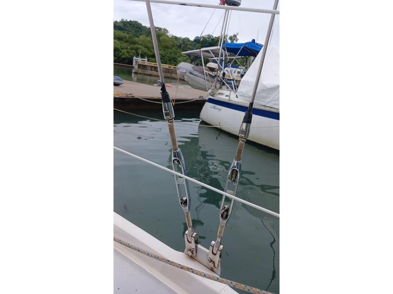 - Inside is clean, new teak flooring (2022) and. 1 front V berth; 1 large aft berth. 1 bathroom (head) with shower, sink and toilet. Aft cabin with King size bed. Good living room with foldable table or an bed; place to cuddle like a sofa Galley * AC fridge compressor & cold plate install (2020) * Fridge Can be run offshore on the 2000W Renogy inverter.installed (2022) * Spacious Gallery (kitchen) with Stainless oven with 2 too cookers. Engine * Engine has been rebuild, piece by piece. * Yanmar 3GM30F . some of the best engine brand where you can find parts worldwide. * Rebuilt Start ignition Panel (2024) * 12V High Crancking Starter Battery (2024) * New exhaust elbow (2023) * New Starter Solenoid 2023 * Raw water bump (2021) * New high output alternator 80A (2020) * New fuel injectors replaced all three (2020) * GRECO bronze water strainer (2019) * New Prop and cutless bearing (2019). * Engine mounts alignment (2023) * regular oil change. Hours are unknown (no engine hours meter) I believe under 2000 hours. Hull * New Bottom ani-fouling paint (2024) with Sea Hawck in Shelter Bay Marina * 4 New Seacock and packing plates (2024) * Stainless Steel Arch Built in Rio Dulce Guatamala for $3,800 to hold 4 Large Solar panels 480W Electronics * All installed in 2021,2022 in Rio Dulce Guatemala, * installed NEW CPT Autopilot (2022) cost $1,800 in Rio Dulce Gua |