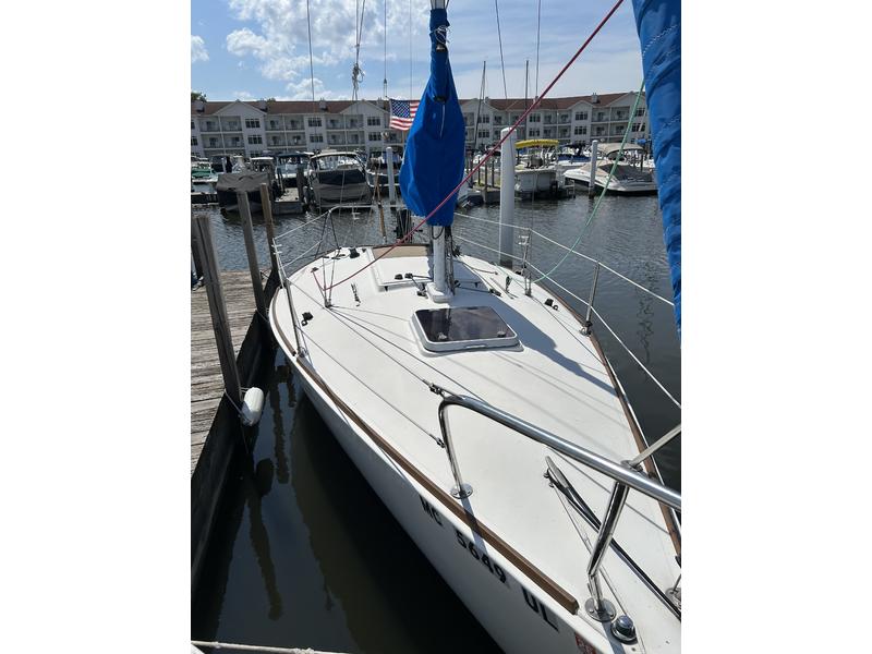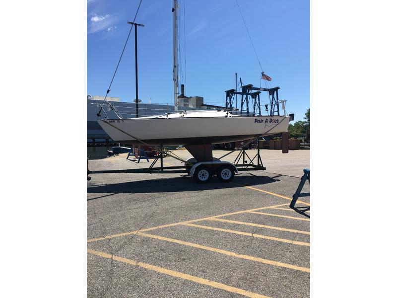 In addition to the Dacron sails listed in the description, there are three spinnakers in good to fair condition plus an additional Dacron and carbon fiber, jib and main for traditional mast hoisting when batten car track removed. 2023 Mercury propane 5 hp outboard with fiberglass 11 pound tank (5.56 hour runtime), Port-A-potty, anchor and rope rode, 1975 Calkins tandem axle trailer. There are no electronics. The boat is fast and fun. The J 24 is built for speed. |