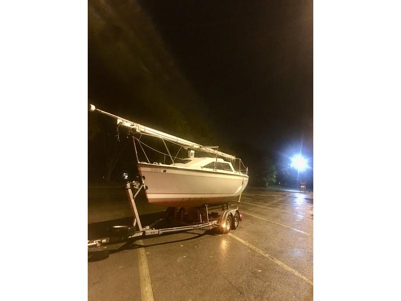**PRICE INCLUDES CUSTOM LOAD RITE TRAILER** Intelligent Modern design and generous HQ construction. Considered one of the best and last ODay Yachts ever built at the Fall River, MA headquarters. The beautifully crafted 240LE sailboat has all the features of a large Coastal Cruiser yacht, with the luxury of being trailerable. It has been loved, enjoyed, and well-maintained. *Midwest Inland lake sailed for her entire life- and has never seen saltwater* Turn key ready for the next enthusiast, this package represents value and solid craftsmanship that is hard to find in todays models. 9.9 HP 4-STROKE Honda Engine for reliability is quiet and efficient. Brand New North Sails Racing Mainsail. Roller Furling jib, with jiffy roller reef & furling system. 1200lb solid lead patented Winged Hydrokeel for speed, agility, performance, and shallow draft. The superbly designed interior is spacious and accommodating with ample headroom featuring beautiful custom interior teak wood craftsmanship, a separate and brand-new private head, a galley with 2-burner stove, deep sink, a custom ice chest with handy meal prep counter tops. Rated Hull speed at 11.33 km/h **READY TO SAIL!** |