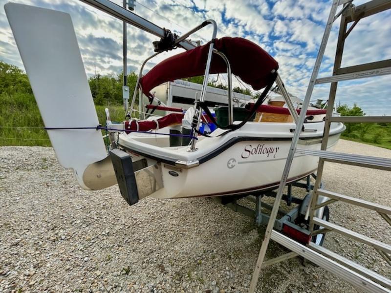 Bimini, mainsail cover, tiller cover are tired, but serviceable.