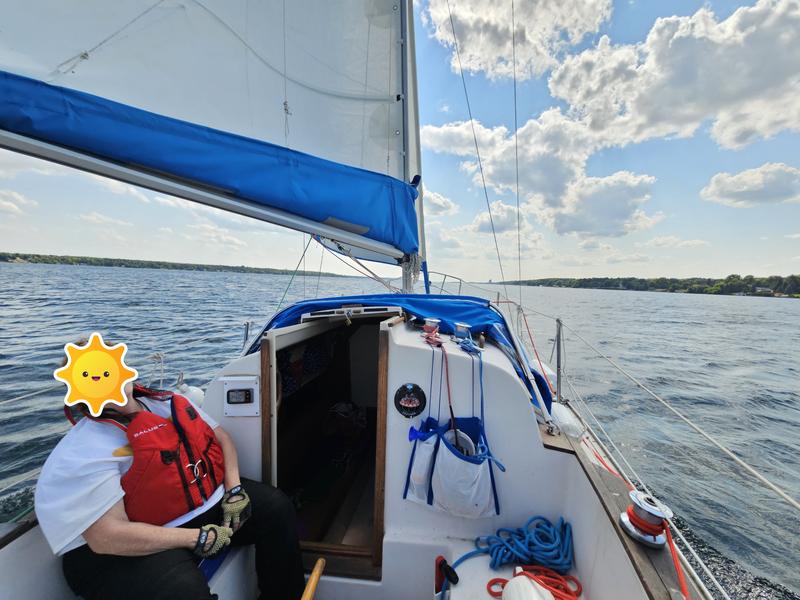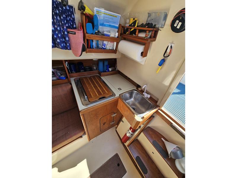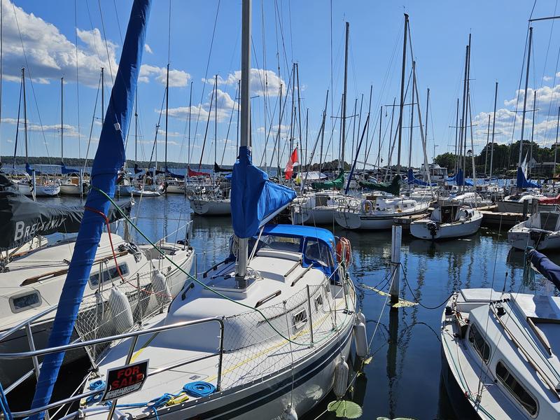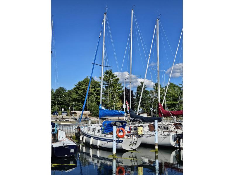 Particulars: Schaffer CF700 Roller Furling (2023) New main and Genoa sails (Lee Sails 2023) Main sail stack pack 8 hp Yanmar 1GM10 diesel inboard engine with low hours (Serviced annually) Two 100-Watt and one 40-Watt solar panels (2023) Charge controller, 12 Volt and USB outlets Two deep cycle batteries. Danforth and Delta anchors with 25 feet of chain and 50 plus feet of anchor line. 3 Life jackets, lifelines and life ring In-cockpit, mechanical bilge pump plus automatic bilge pump. Galley Area: Alcohol stove, sink with electric water pump, deep ice box and ample storage. Cabin interior: Reupholstered cabin settee and V-berth cushions, Customised portlight curtains. Jabsco marine head and new seacocks (2022) Two fire extinguishers (5-BC and 10-BC), fire blanket, Smoke detector. Raymarine i40 Depth finder and knot meter (2023). Raymarine ST2000 auto pilot (2023) Mounted ICOM IC-M3330 VHF/Radio 1-25Watt and new antenna (2022) Plastimo Dinghy with oars (New 2022) Minn Kota Trolling Motor 30 Lbs of Thrust (New 2022) Customised sailboat trailer (New 2023) Extras: Oil filters, fuel filter, impeller, docking lines, handheld compass, binoculars, day shapes, companionway bug screens, fenders, charts, books, etc. |