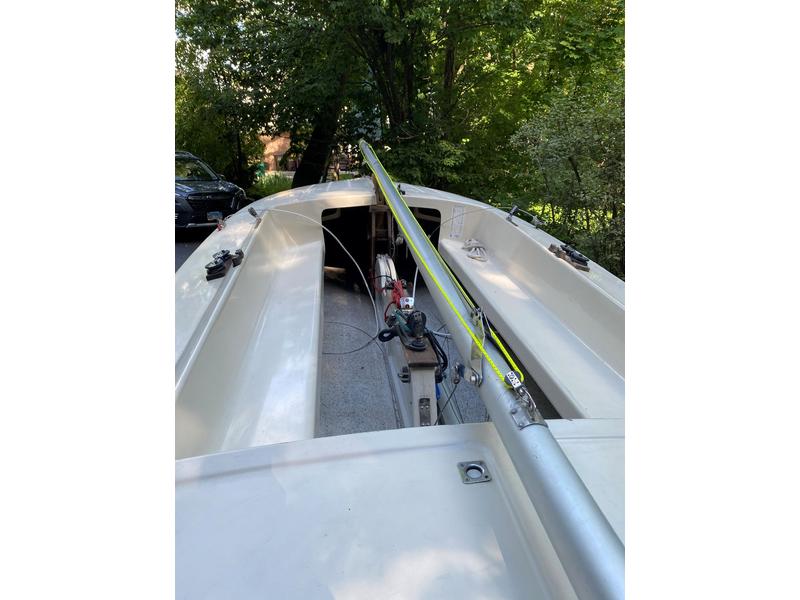 The Good: This is a great sailing Scot. Its clean. Everything works well. Lines, blocks, shrouds, sails, all in great shape. Includes main, jib, and spinnaker, trailer, and boat cover. The Bad and Ugly: Its 38 years old. It has its share of nicks and dings. In particular: - The base of the mast is reinforced with metal straps. Its ugly but works just fine. Its been this way for years. - The boat cover zipper is broken. But the cover works fine with snaps. - The trailer wheels are rusty. Theyre ugly but are fine. New tires. |