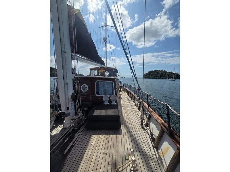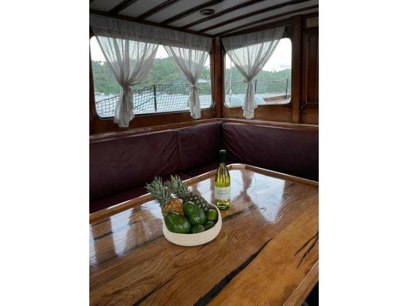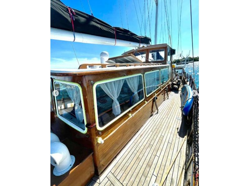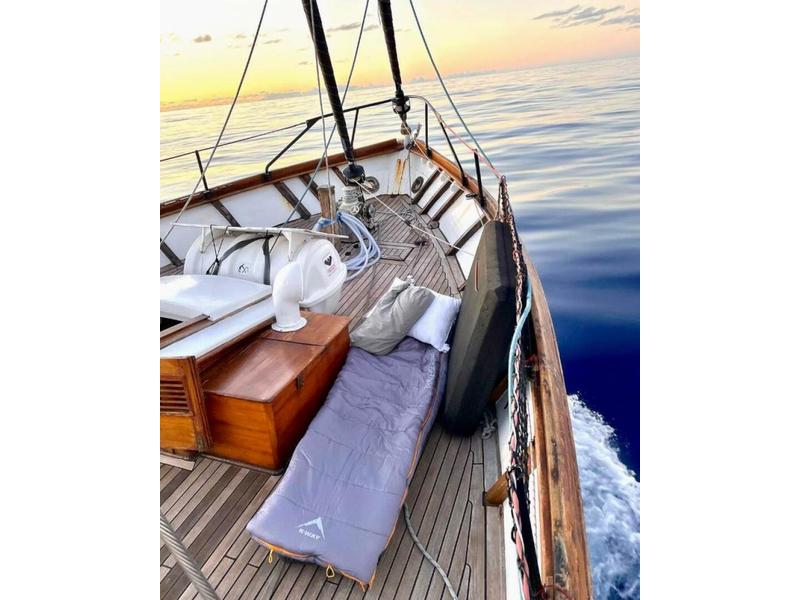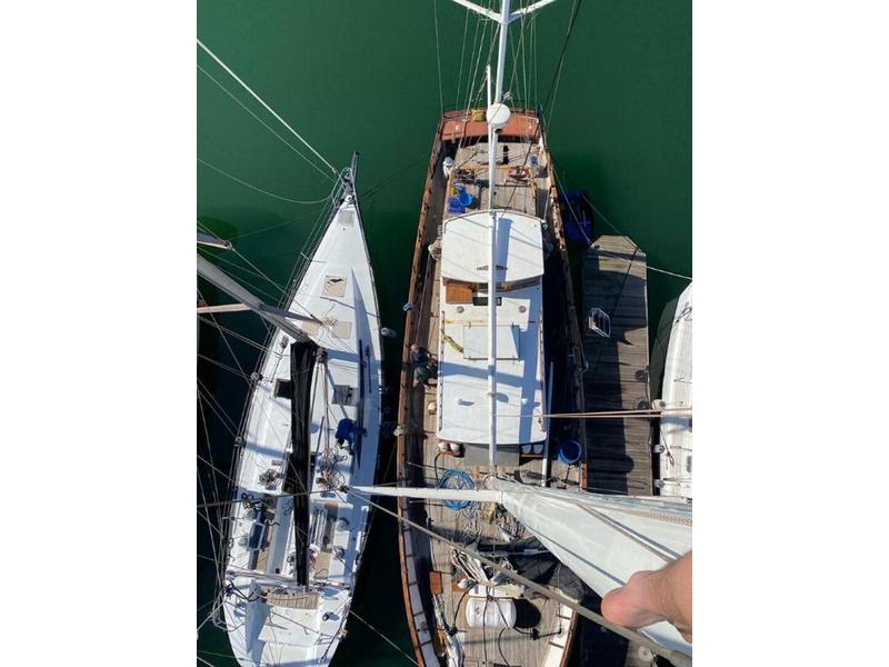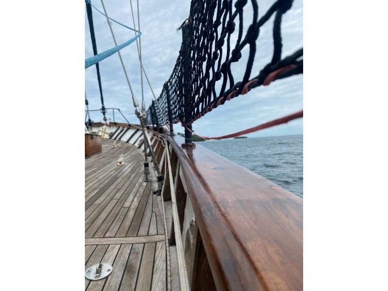 In 2020, her current owner commissioned a major refit, transforming her into the proud ocean voyager she is today. Upgrades included the installation of a brand-new 225hp John Deere diesel engine with a new turbo and gearbox oil cooler, all-new through-hull fittings, a fully replaced rudder and hydraulic system, and the removal and servicing of both masts with new stainless-steel rod rigging. In 2022, her topsides and antifoul were renewed, completing her rejuvenation.