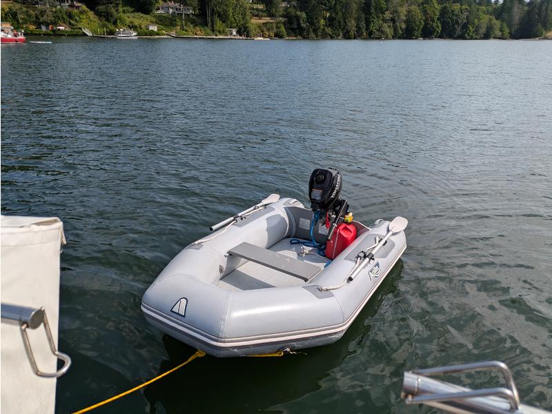 The boat includes Puget Sound charts and life jackets. A well-kept Achilles inflatable and Tohatsu 3.5hp outboard are available separately if desired.