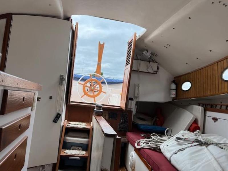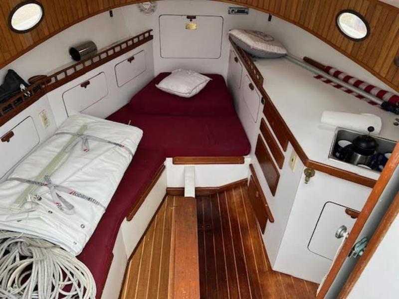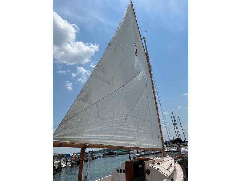 LOA : 22′ 6″ LWL : 21′ 4″ Beam : 10′ Draft 26″ Brd Up, 5′ 6″ Brd down Displacement 6,500 LBS, Yanmar 18 HP 2GM20 Diesel Engine. Fuel 12 gallons, Newer Sail Made By Quantam New Lazy Jacks Garmin GNX Wind Instrument, new Garmin GPS Striker Vivid 4/5, new AC Power 30 AMP Shore Power New Bimini, 2023 All Cleats and Window Frames are bronze Mast stripped & re-anodized Harken 20STA main sail winch, recent Strong track mainsail track, no mast hoops, MUCH SIMPLER !! All new running rigging New centerboard