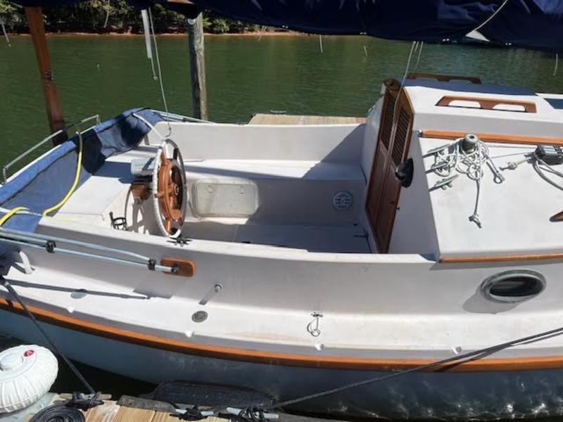 1999 23′ MENGER CATBOAT Location : Mooresville, NC, on LAKE NORMAN Asking price : $35,900