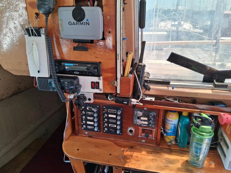 roller furling, main, 130 & 155 genoa, new 12 hp ob with remote control and steering, all lines run to cockpit, depth sounder, vhf, chart plotter, compass, solar charger, stove