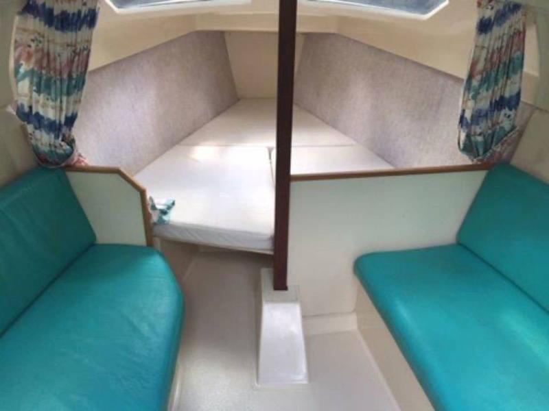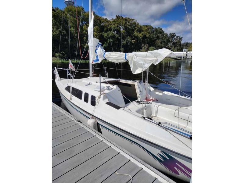 Key Features: Length: 23.5 ft Beam: 8.3 ft (very stable) Draft: 1.5 ft (board up) / 5.5 ft (board down) perfect for shallow waters and exploring Water Ballast System easy to tow, light on the trailer, stable on the water Swing Centerboard & Kick-up Rudder access those shallow coves and beach easily Spacious Cockpit comfortably seats 6 adults Roomy Cabin sleeps 4, with V-berth, settees, and storage throughout Pop-top cabin hatch for extra headroom and ventilation