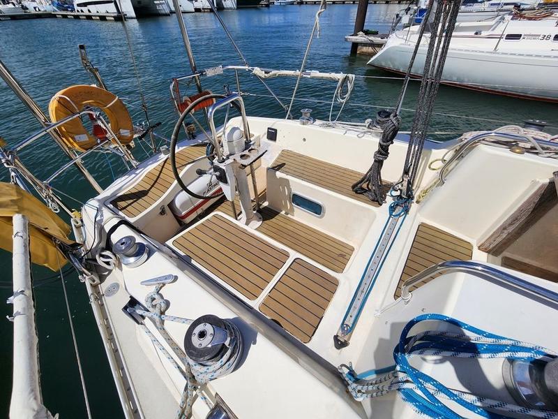 Deck: Delta and Fluke anchors 60 m of chain 60 m of cable. Sinbad windvane. 7 fenders. 2 halyard winches. 2015 standing rigging. 4 sheet winches (self-tailing primary). Tohatsu 3,5 Hp outboard motor. Deck awning.