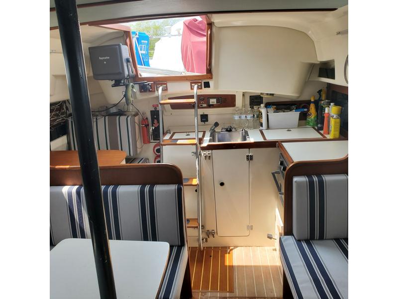 Additional Features Cockpit Cushions New Sunbrella Bimini this Spring Main Sail Cover Helm Compass, plus Salon Compass Horseshoe Buoy and man Overboard Buoy and line Adult Life Jackets (6), plus kids & small dog vests Basic Visual Distress Signal Package Horn & Fog Bell Fire Extinguishers (3) Miscellaneous Boat Gear (Boat Hook, 3 new Fenders, Board Fender, new Mooring Lines,